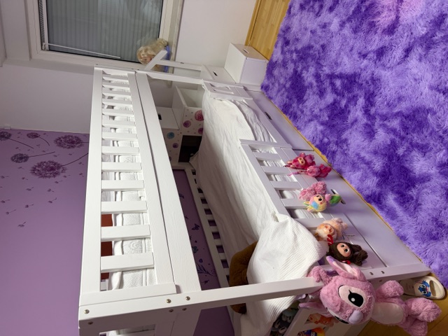 Solidna rama i precyzyjne wykonanie gwarantują trwałość konstrukcji. Białe łóżko piętrowe ze schodami zostało zaprojektowane z myślą o intensywnym użytkowaniu.