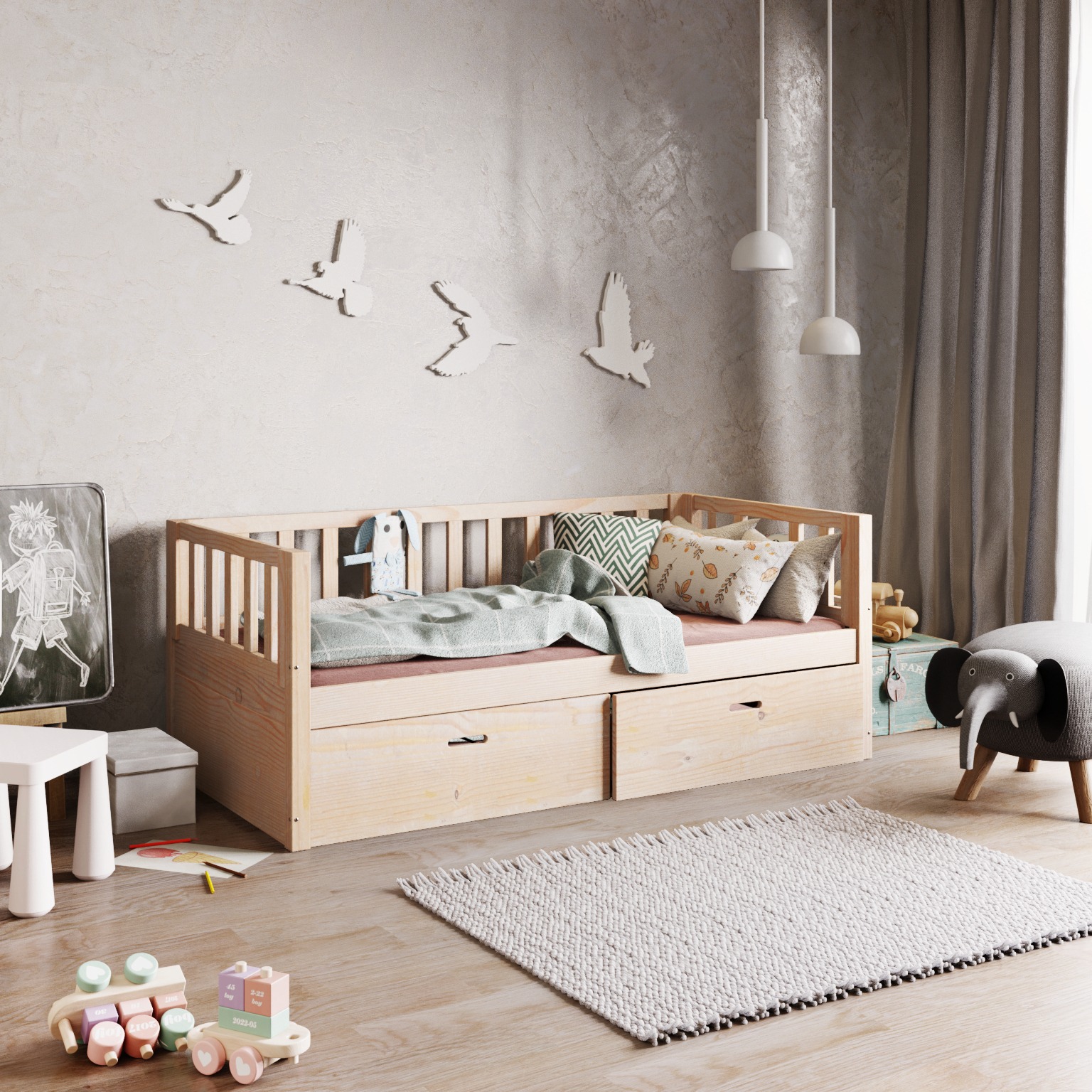 Prosta i ponadczasowa forma sprawia, że łóżeczko rośnie razem z dzieckiem. Drewniane łóżeczko dla dzieci z szufladami sprawdzi się zarówno w mniejszych, jak i większych pomieszczeniach, pomagając zachować porządek i estetykę wnętrza.