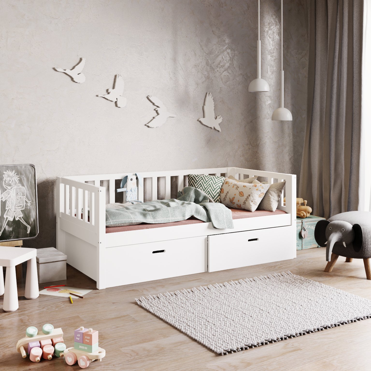 białe Drewniane łóżeczko dla dzieci z szufladami