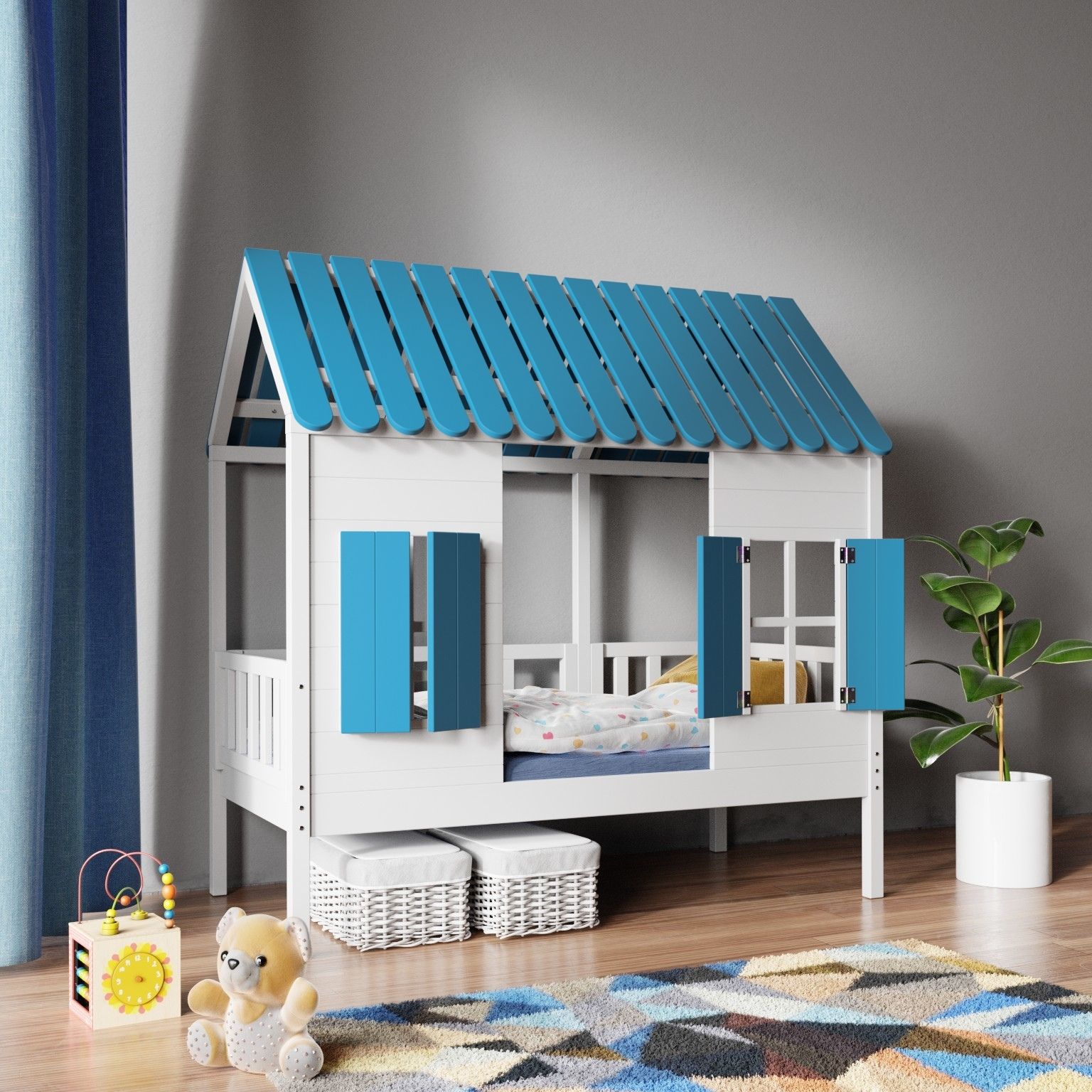 Dzieci potrzebują miejsc, w których mogą czuć się swobodnie i bezpiecznie. Łóżko dziecięce z dachem i oknami tworzy naturalną strefę komfortu, sprzyjającą spokojnemu zasypianiu i kreatywnej zabawie w ciągu dnia. Okna i dach pobudzają wyobraźnię, zachęcając do zabaw tematycznych i budowania własnych scenariuszy.