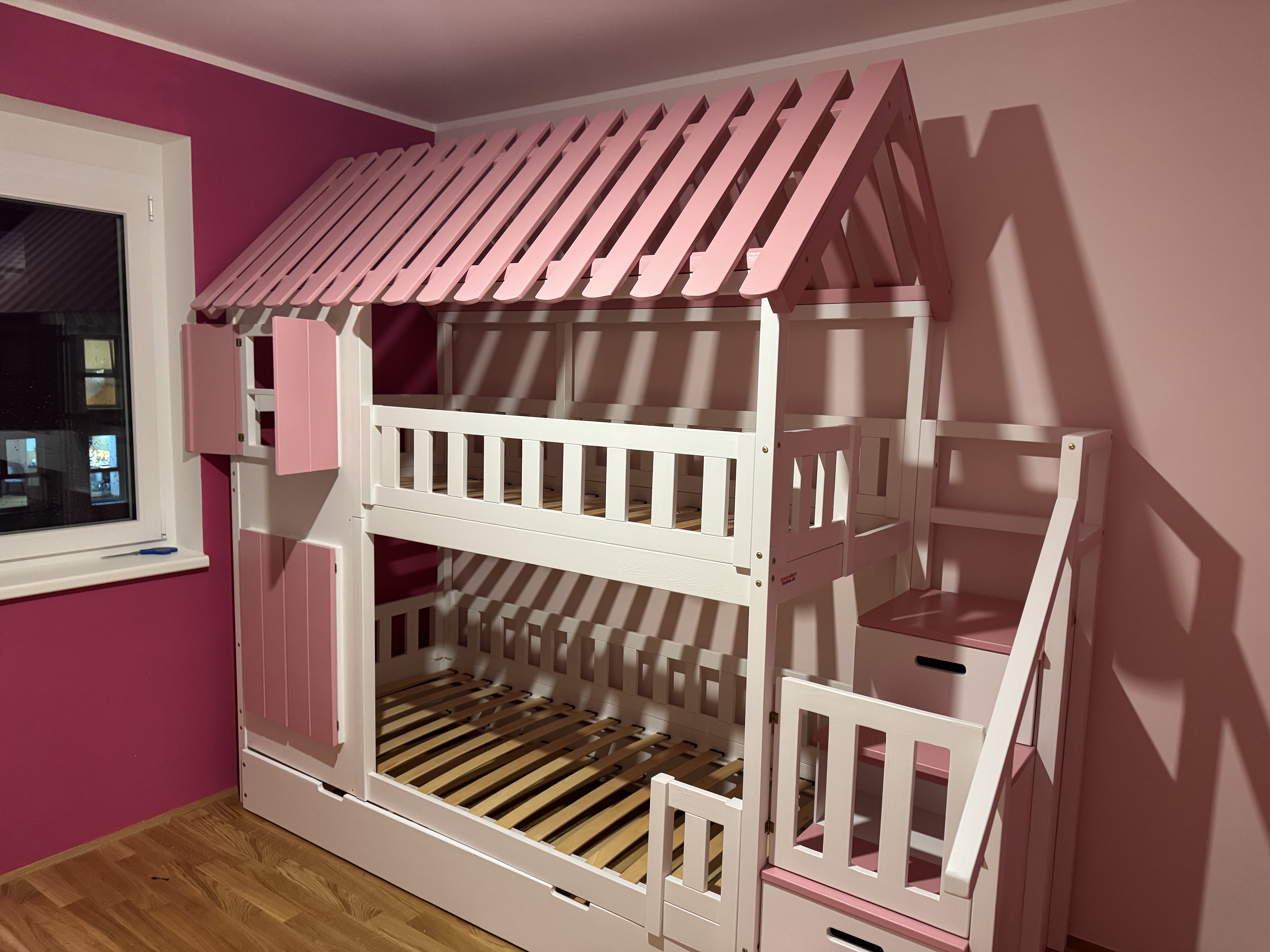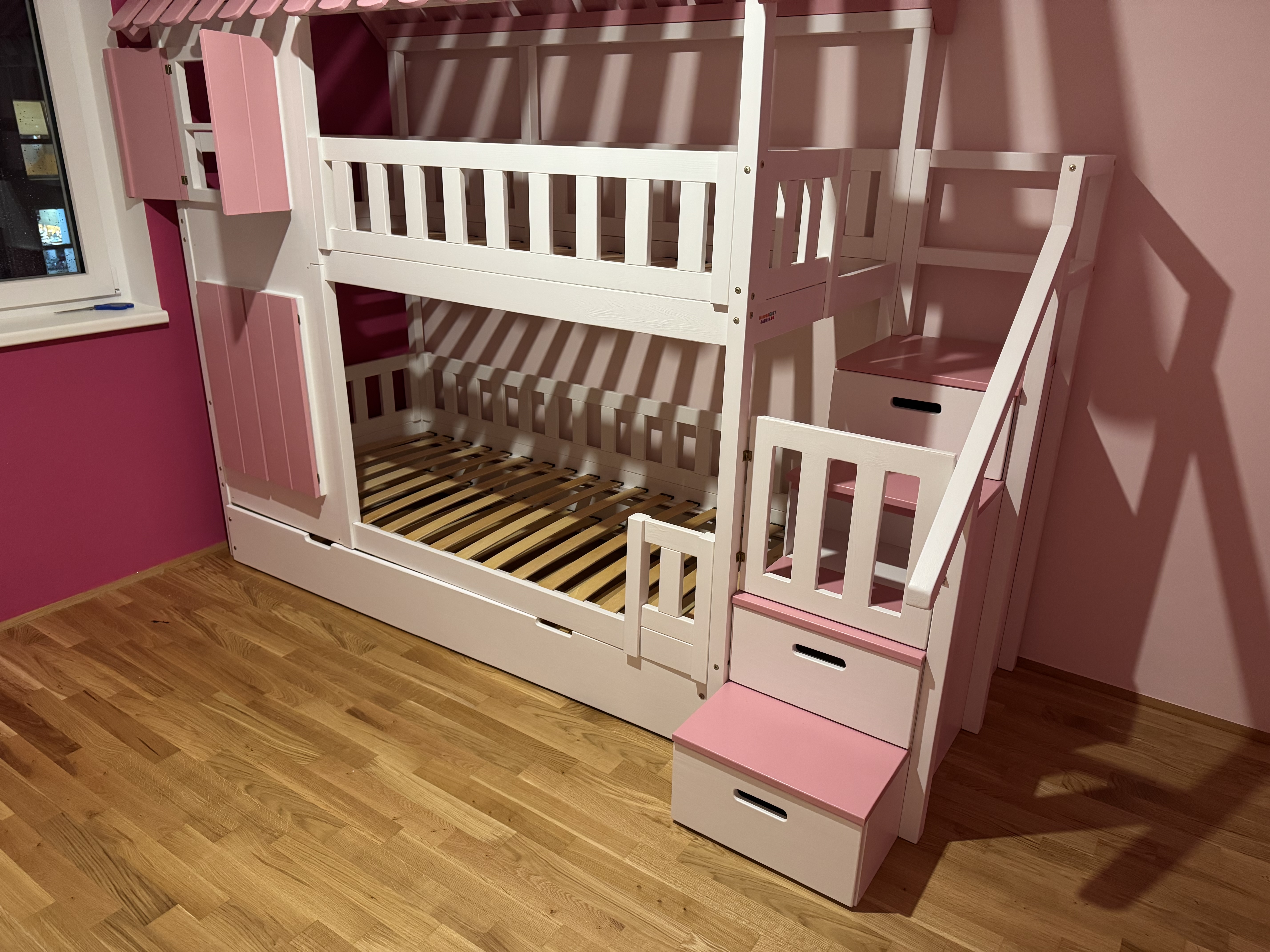 łóżko piętrowe z dachem i schodamiłóżko ze schodami dla dziewczynekpokój dziewczynekłóżko ze schodami i dla dziewczynekpokój dla dziewczynek