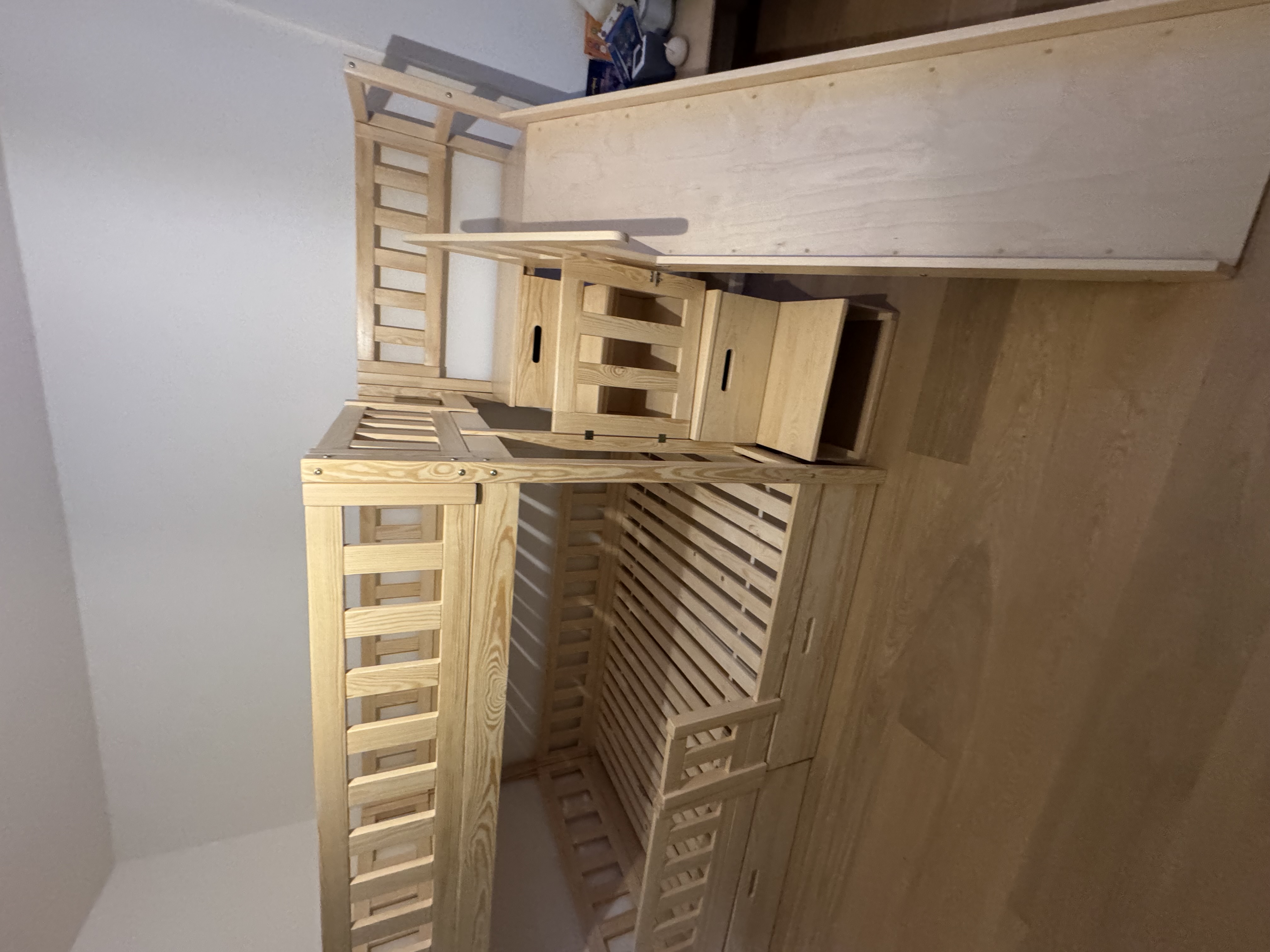 Strona główna » Nasze realizacje » Łóżko piętrowe ze schodami i ślizgawką – naturalne drewno