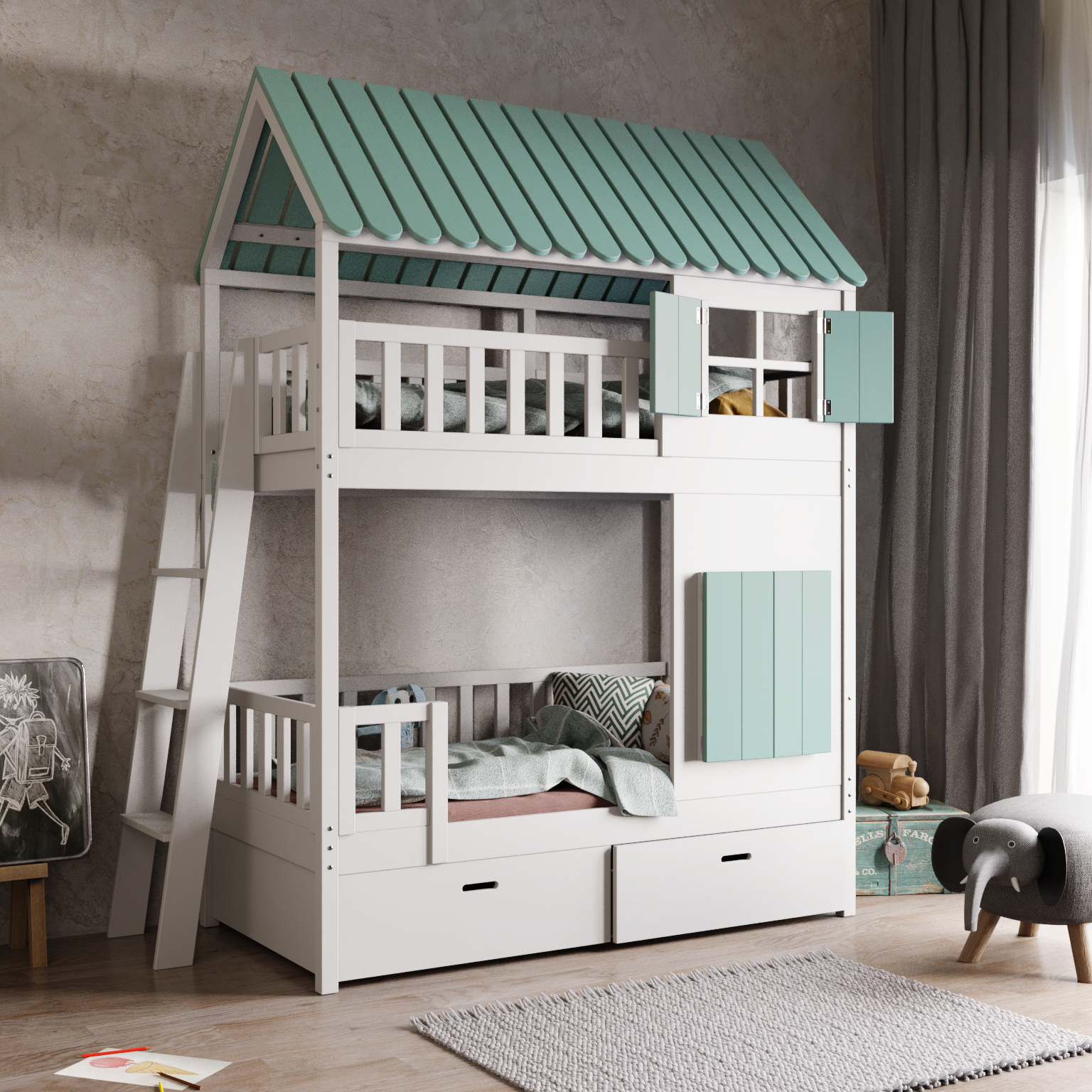 łóżko piętrowe z pełnym dachem, łóżko domek z pełnym daszkiem, łóżko piętrowe domek z drabinką, drewniane łóżko piętrowe domek, łóżko piętrowe dla dzieci z dachem, bezpieczne łóżko piętrowe domek, łóżko piętrowe oszczędzające miejsce, funkcjonalne łóżko piętrowe z daszkiem.